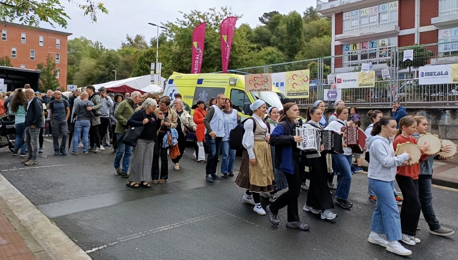 Goizeko lehen orduetan euria egin badu ere, Kilometroak jaia hasi baino lehenago atertu egin du, eta euriak eskainitako meniari esker, Elgoibarrera etorri diren milaka lagunak gogotik ari dira disfrutatzen Elgoibar ikastolak prestatu duen egitarau zabal eta askotarikoarekin.