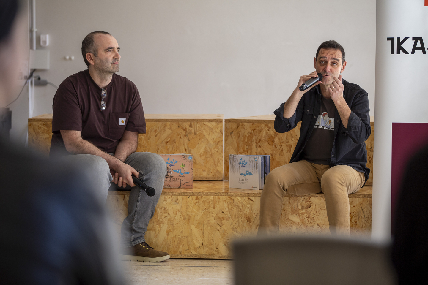 Xabier Etxeberria gidoilariak, berriz, istorioen atzean egon den idazketa‑prozesua azaldu du: mendian galdutako otso txiki baten abenturatik abiatuta, adiskidetasuna, beldurra, konfiantza eta elkar zaintza bezalako gaiak lantzen dituzten istorioak ehundu dituztela, haurren eguneroko kezkekin eta emozioekin lotuta. Kontatu dute nola pentsatu dituzten pertsonaien ahotsak eta hizkerak, euskara batuaren eta euskalkien artean zubi eginez, eta nola moldatu duten kontakizuna entzunezko formatura, kapitulu bakoitzak bere zirkulu narratiboa izan dezan eta, aldi berean, bilduma osoa ipuin bakar luze baten moduan irakurri eta entzun ahal izan dadin.